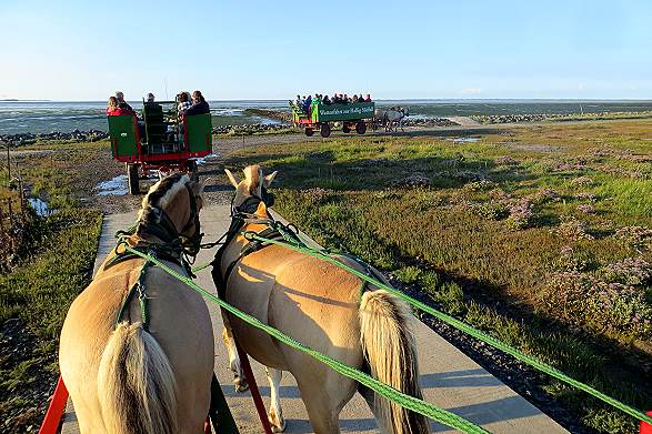 Dauer der Kutschfahrt: 3,5 Stunden inklusive 1,5 Stunden Halligaufenthalt